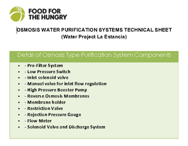 After meeting with leaders of Food for the Hungry/Striking out Poverty (“FH”) and La Estancia, it was determined providing access to clean and affordable drinking water was the highest priority need for the residents. While the village had older water treatment equipment it was no longer providing acceptable drinking water for residents and had been shut down.